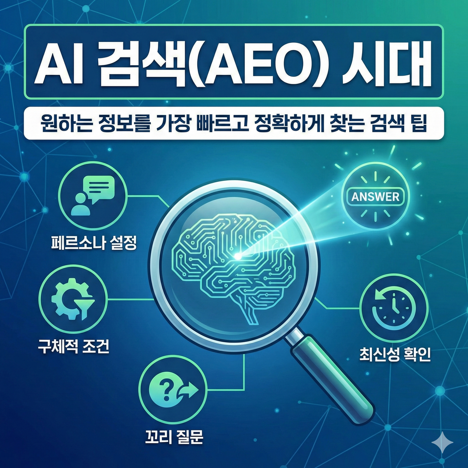 핵심 요약 상세 가이드: AI 검색(AEO) 핵심 변화 및 대응 전략 구분 주요 특징 및 사회적 변화 정보 검색 대응 팁 검색 패러다임 키워드 중심 검색 -> 문장/대화형 검색 육하원칙(5W1H)을 포함한 구체적 문장형 질문 사용 결과 도출 방식 사이트 리스트 나열 -> AI 직접 요약 및 답변 답변 하단에 표시된 원문 출처 버튼 클릭 및 … 더 읽기