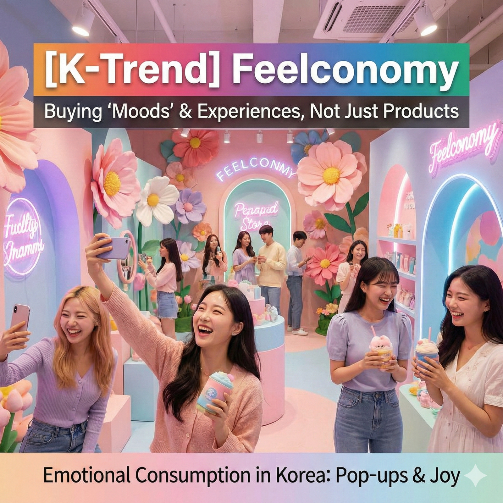Analyzing ‘Feelconomy,’ a new driver of the Korean economy where people buy ‘moods’ rather than functions. This post details the characteristics of emotion-centered consumption for stress relief and self-identity, along with industrial changes and smart tips.